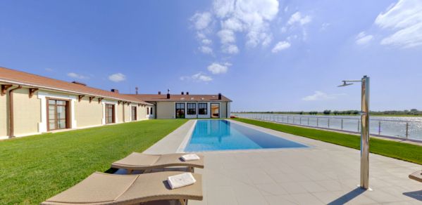 - НОМЕРА — 11 номеров, но большие общественные пространства для гостей – около 200 кв. метров на каждый номер. Все номера одной площади (27 кв.м.) и одинаковой планировки. Пять номеров имеют свои выходы к бассейну и реке.